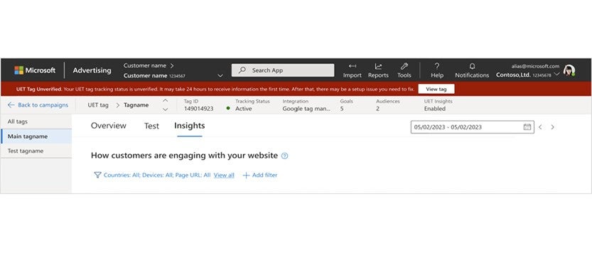 - Expanded lookback period: The UET overview tab now includes an expanded lookback period on the performance of your tag across all its dimensions, such as events, parameters, and event types.