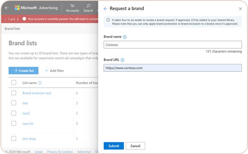 Brand exclusions on PMax is available in pilot for Microsoft Advertising online (and will be coming to Microsoft Ads Editor in the coming months). To get enabled for brand exclusions, please reach out to your account manager or contact Support. See more details here: About brand lists (microsoft.com).