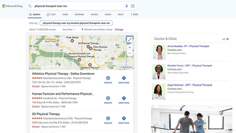 Following our announcements in the Travel, Automotive, Credit Card, and Health Insurance space, we’re now excited to expand our Professional Services offering for medical service providers, empowering them with a new engaging experience known as Doctor and Clinic Ads. With a spot on the right rail of the Bing search engine results page (SERP) running alongside mainline text ads, you can showcase your medical services more prominently than ever before.
