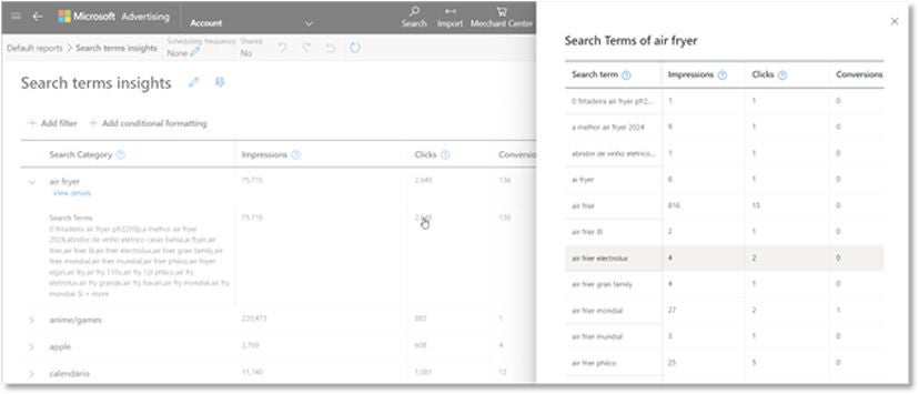 Regardless, whether in Copilot or in traditional search, consumers are expressing their search intent in different ways each and every day. This is where search term insights reports come in, which are now available to all advertisers. These reports allow advertisers to gain valuable insights into how users search for their business, analyzing specific search terms that triggered your ads during a selected time frame and then grouping them into relevant categories with key performance metrics.