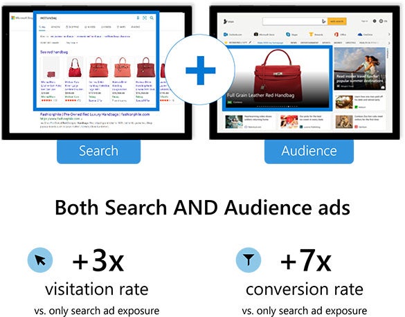 Our research shows that users exposed to both Search ads and Audience ads are significantly more likely to take action, leading to better performance for you.