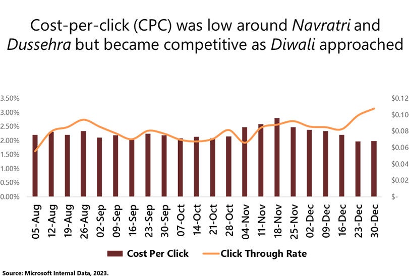 Graph – CPC was low around Navaratri and Dussehra but became competitive as Diwali approached.