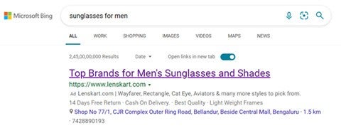 The industry-leading eyewear company partnered with InMobi, Microsoft Advertising’s partner in India, to leverage the untapped power of Search with Dynamic Search Ads (DSA). DSA automatically target relevant search queries based on the content of a website and are dynamically created to respond to these search queries. Such a customized solution was instrumental in the brand cutting through the clutter with targeted and relevant ads.