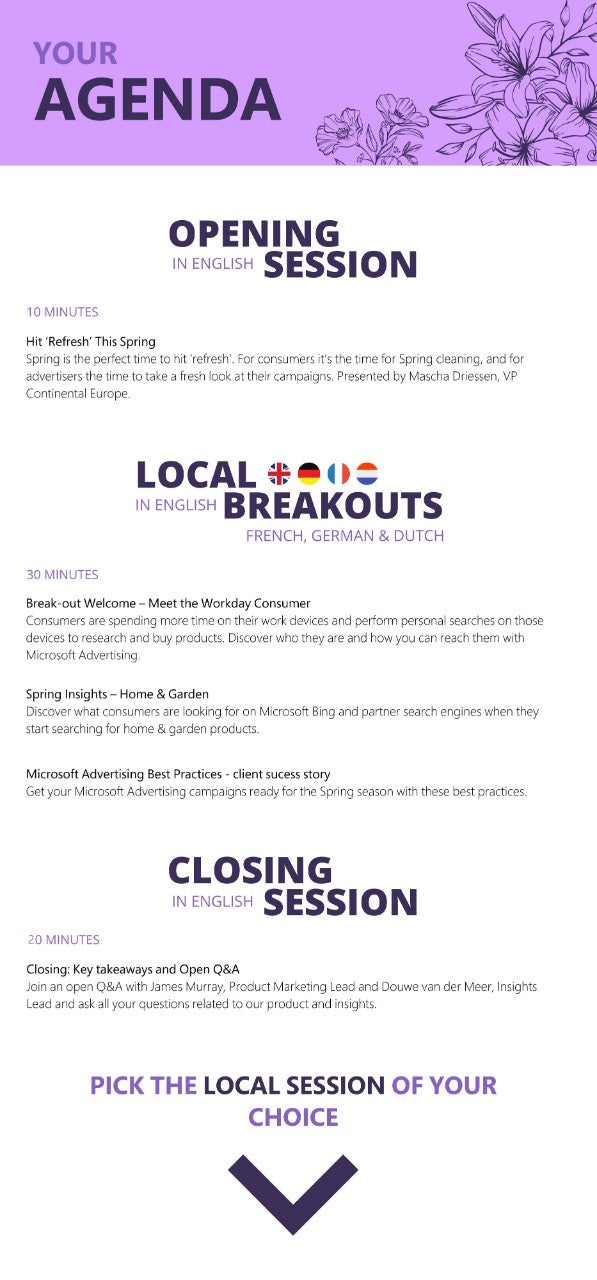 In our virtual ’Spring into Retail Action’ event, discover how Microsoft Advertising can help your business ‘blossom’, with a bouquet of product updates, tips & tricks and home & garden insights.