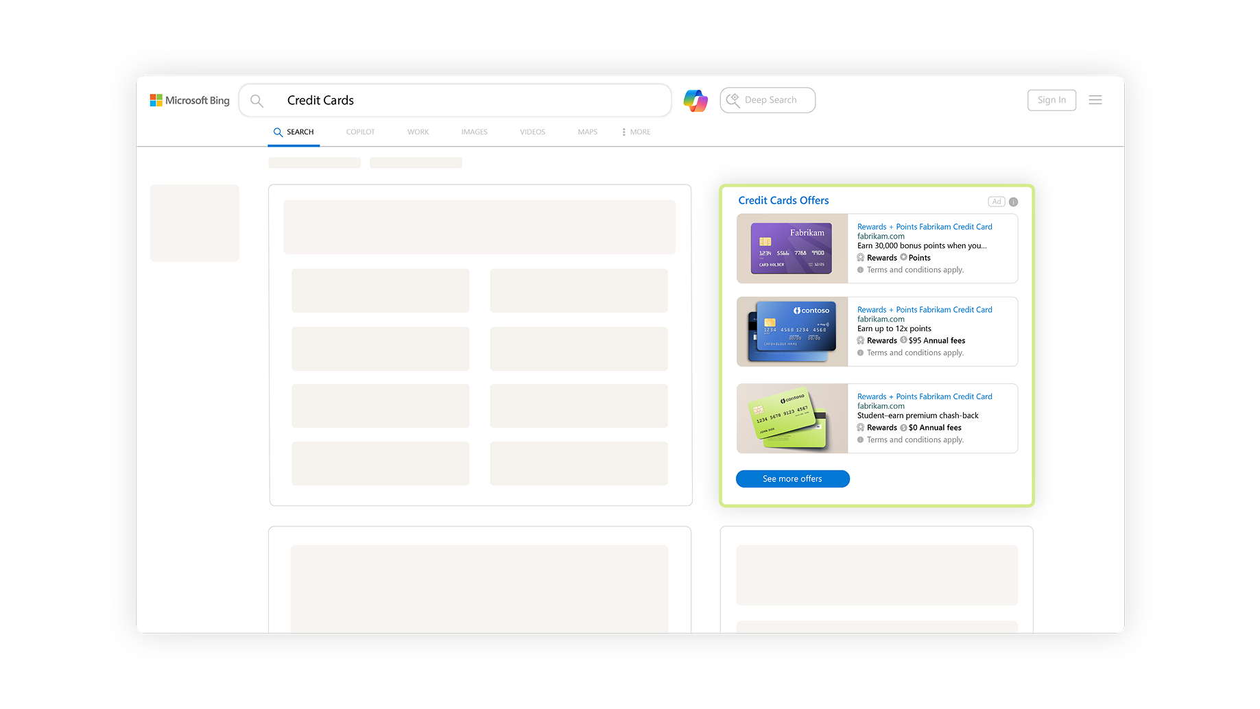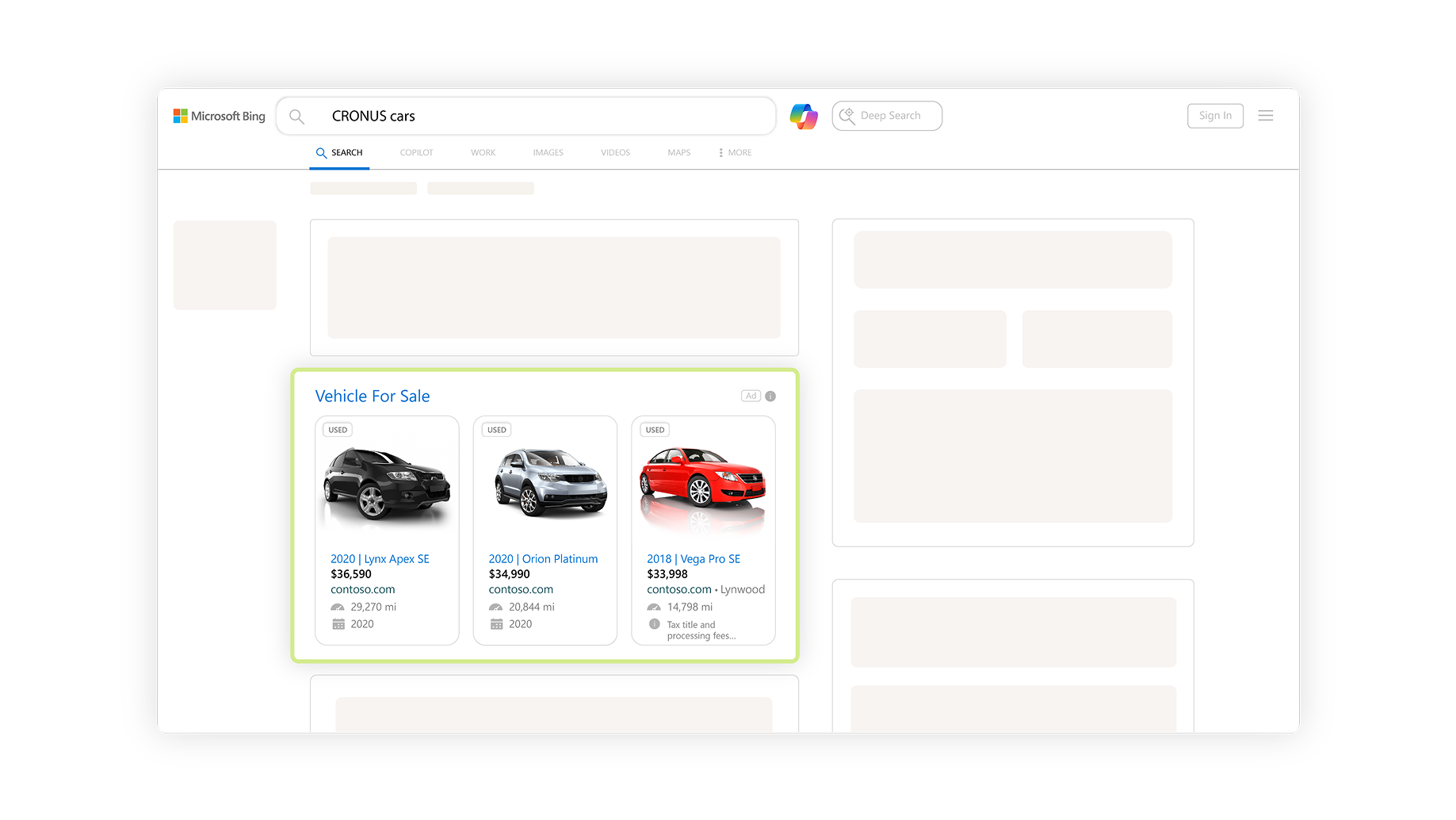 キーワード要件のない Microsoft AI は、パーソナライズされた広告を動的に作成し、ボリュームの増加、クリック率 (CTR) の向上、クリック単価 (CPC) の削減を実現します。