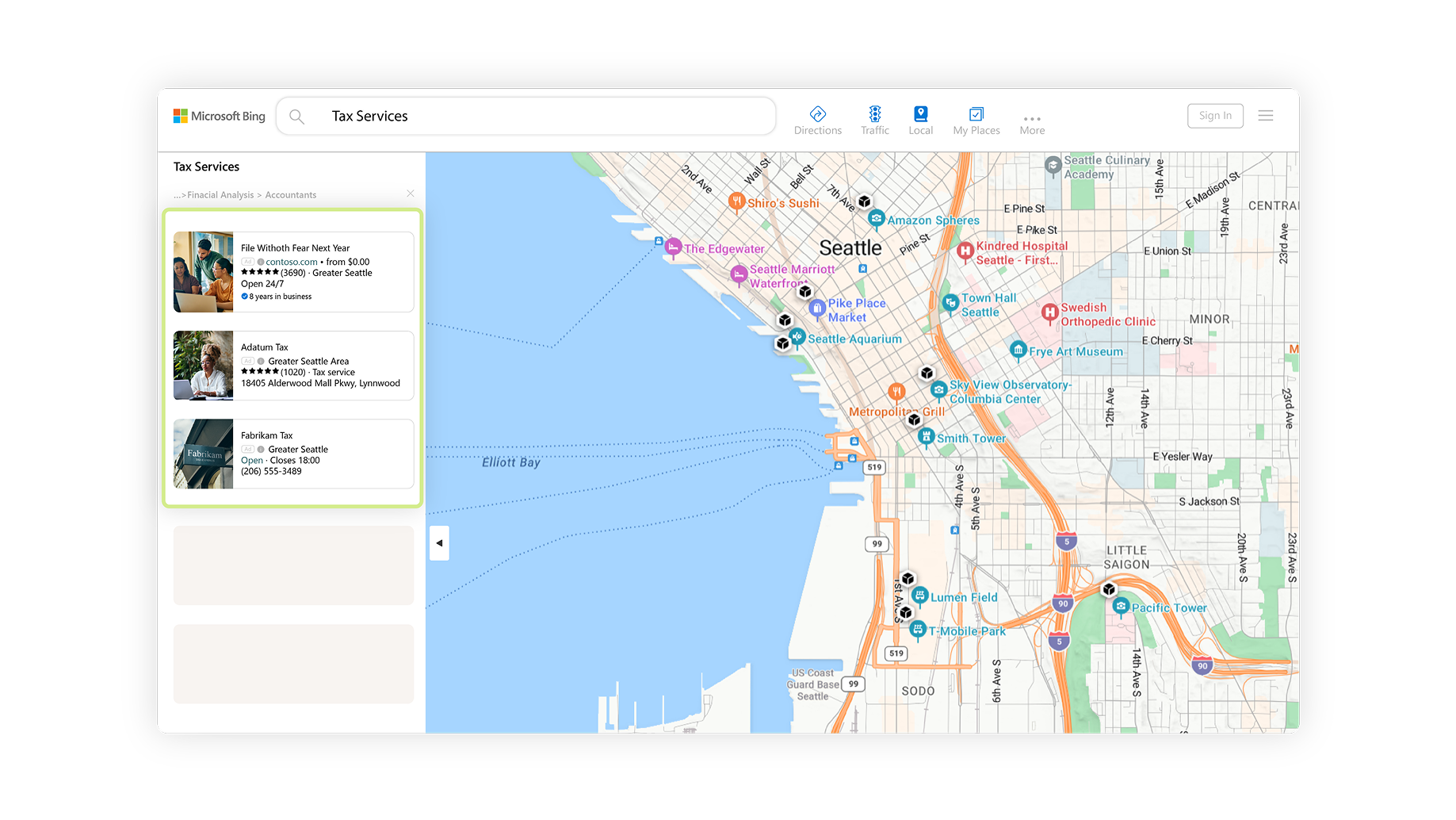 プロフェッショナル サービス広告には、フィード ファイルで指定したデータが使用されます。このデータには、医師や診療所、保険、不動産、税務サービスのビジネス データが含まれます。