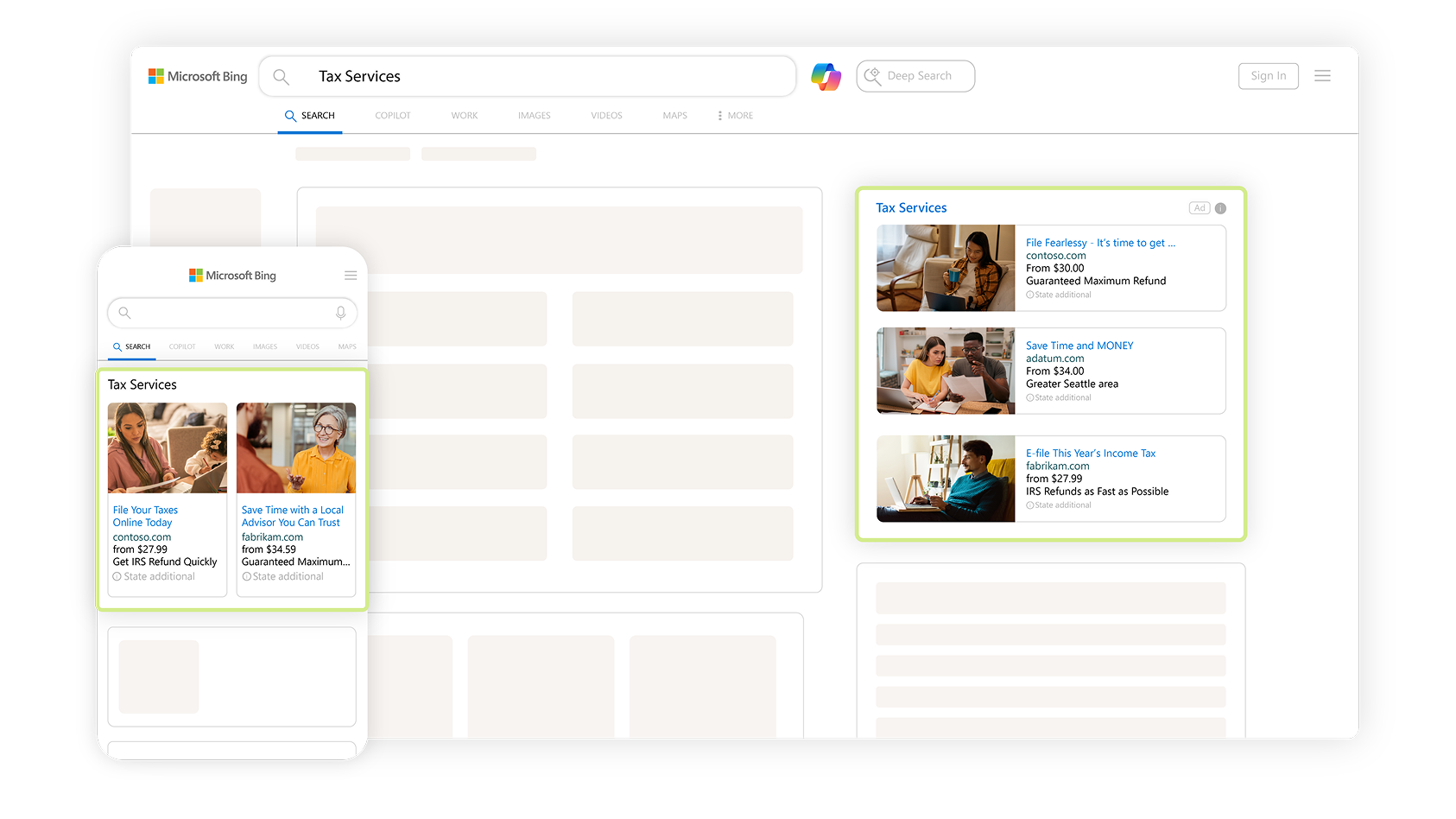 関連性が高くパーソナライズされた広告を作成して ROAS を向上させましょう。Microsoft AI の自動化機能で時間も節約できます。